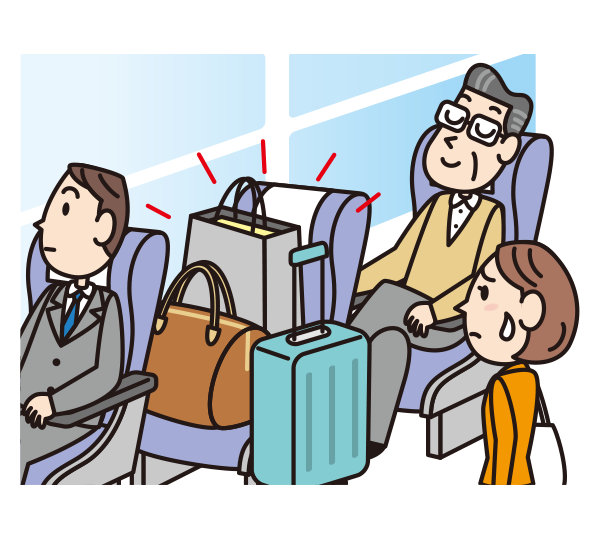 荷物等による座席の占有は固くお断りいたします。網棚・足元・トランク等に収納をお願いします。