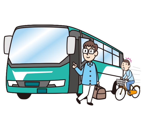 バスをお降りになる際は、足元にご注意ください。また、降車時は左右をご確認の上、お降りください。※自転車が通行する場合があります。