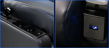 各座席にUSBポートとコンセントを装備し、電子機器、携帯電話の使用・充電が可能