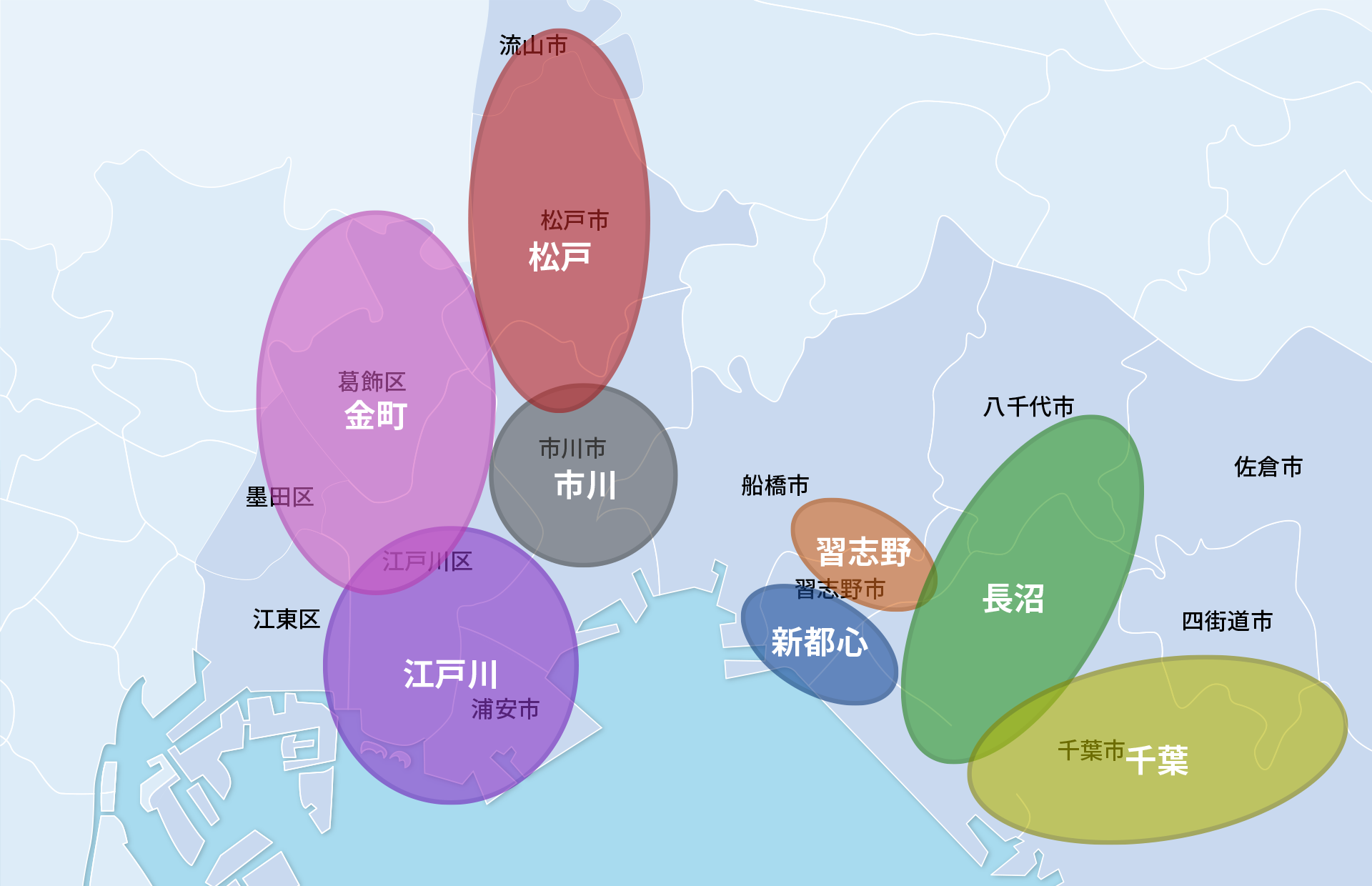 船橋市、習志野市、八千代市、千葉市花見川区内