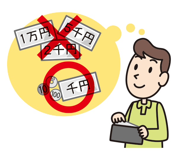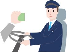 車内では高額紙幣(一万円札、五千円札、二千円札)が使用できず、両替もできませんので、小銭か千円札のご用意をお願いします。