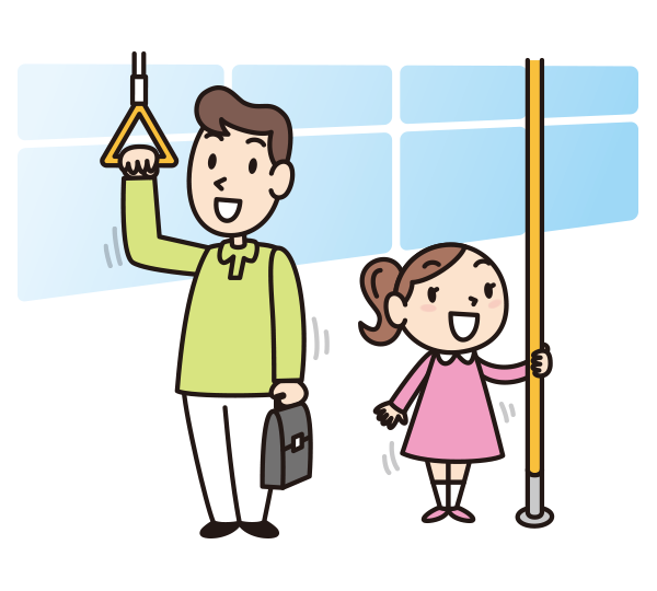 走行中は手すり、つり革にしっかりおつかまりください。やむを得ず急ブレーキをかける場合があります。