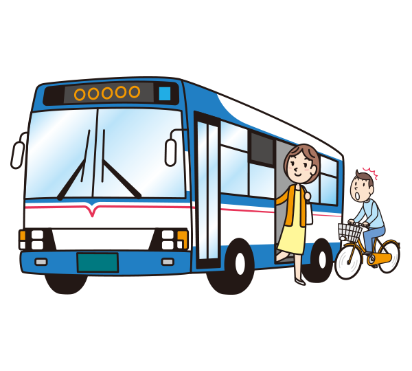 バスをお降りになる際は、足元にご注意ください。また、降車時は左右をご確認の上、お降りください。※自転車が通行する場合があります。
