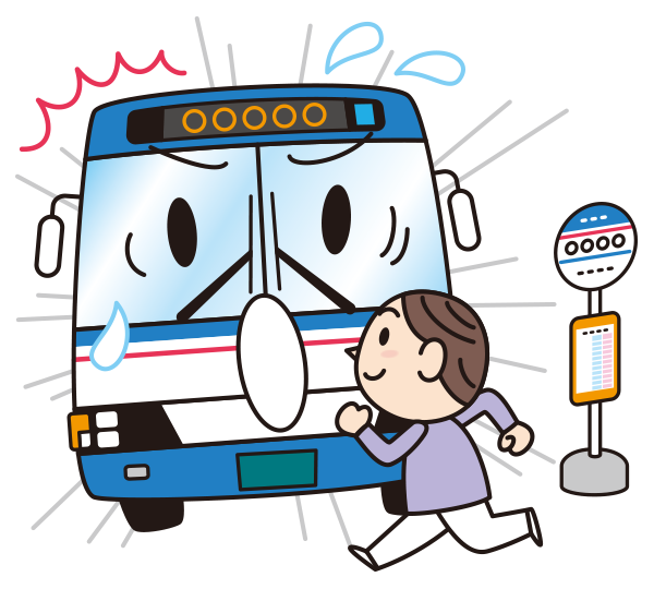 大変危険ですので、降車後はバスの前に飛び出さないでください。