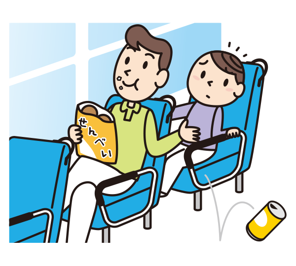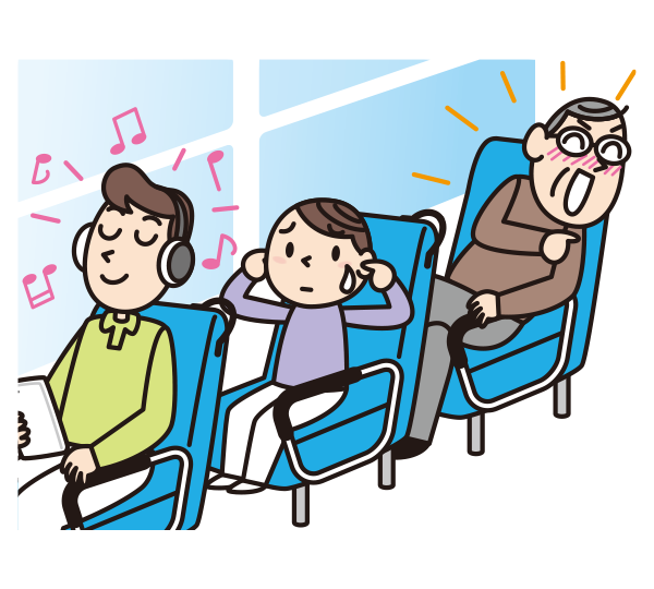 車内では大声や大きな音を出さないでください。ヘッドホン、イヤホンからの音もれやノートパソコンのキータッチ音なども周囲のお客様へのご配慮をお願いします。