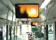<モニター>車内にモニターを設置し、沿線情報を放映。 |